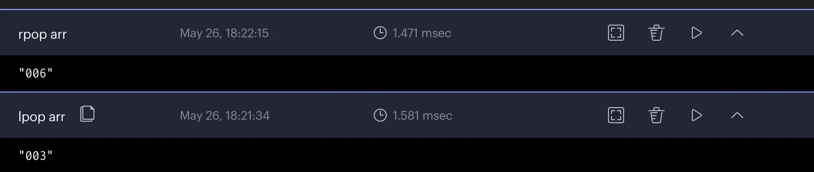 同理,LPOP 和 RPOP 自然是从左边和从右边删除数据。