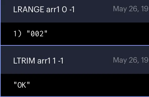 执行 LTRIM arr1 1 -1 删除第一个元素: