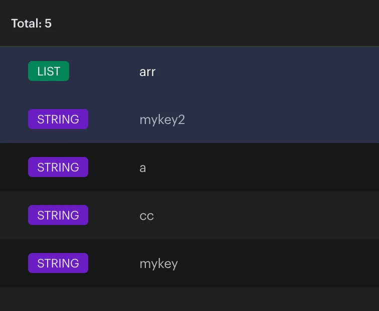 del mykey - EXISTS:查看指定 key 是否存在,支持传入多个 key,返回查到的 key 的数量。注意:如果多次传入相同的 key 是会被多次计算的